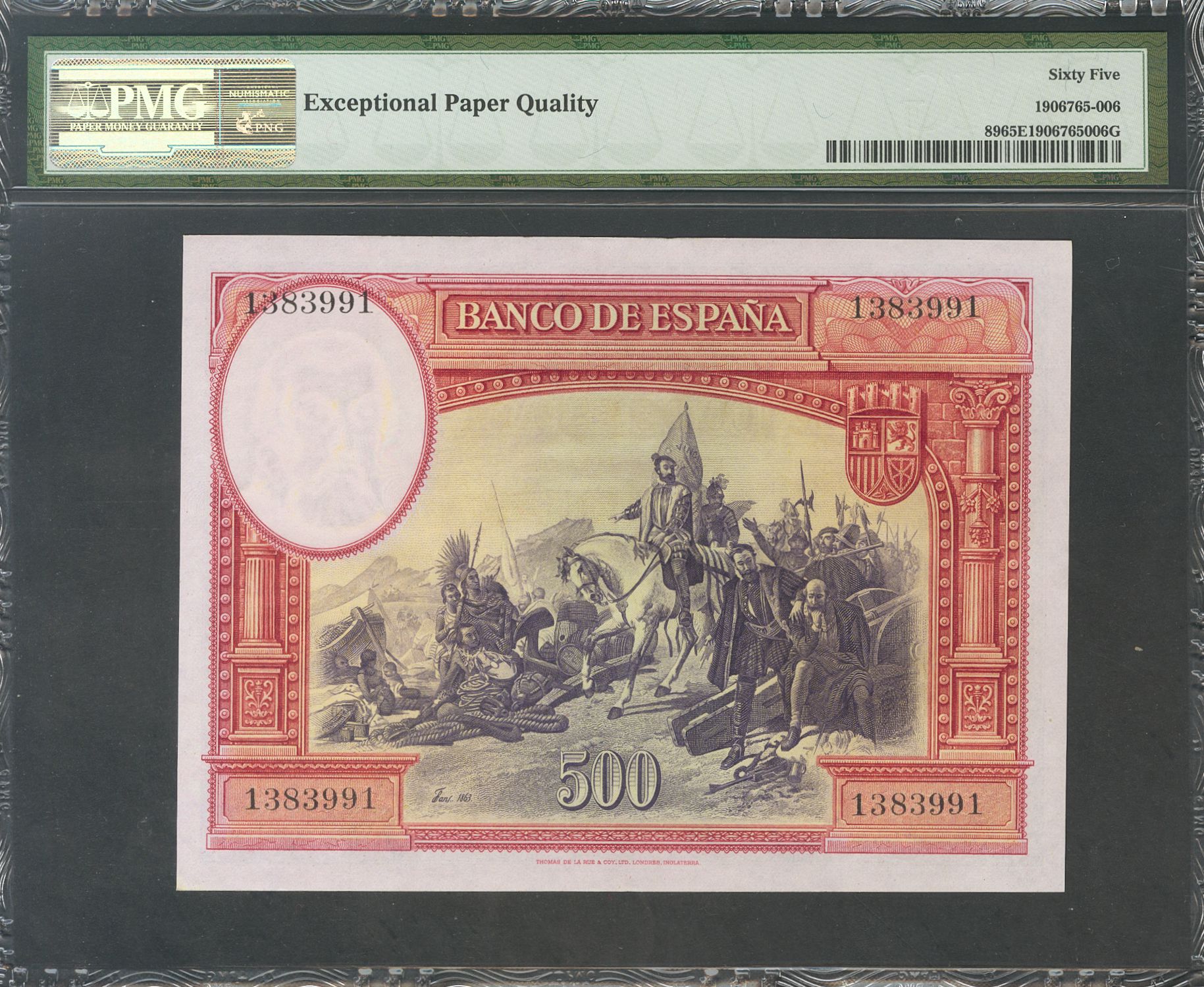 500 Pesetas. 7 de Enero de 1935. Sin serie. (Edifil 2017: 365). Apresto original. SC. Encapsulado PMG65EPQ.