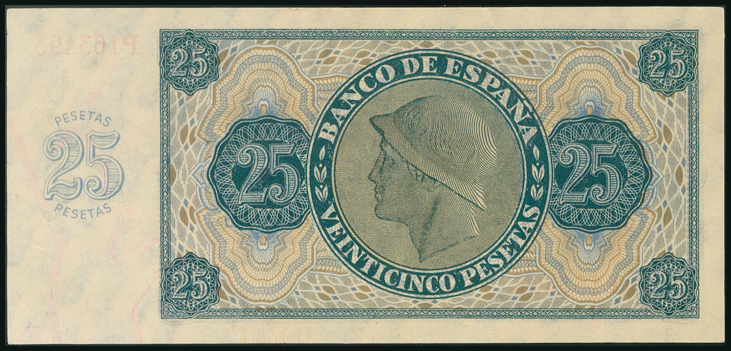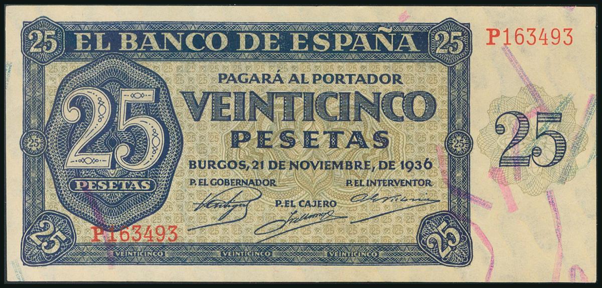 25 Pesetas. 21 de Noviembre de 1936. Banco de España, Burgos. Serie P. (Edifil 2017: 419a). SC-.