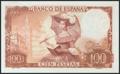 100 Pesetas. 19 de Noviembre de 1965. Sin serie y numeración capicúa 0343430. (Edifil 2017: 470). SC.