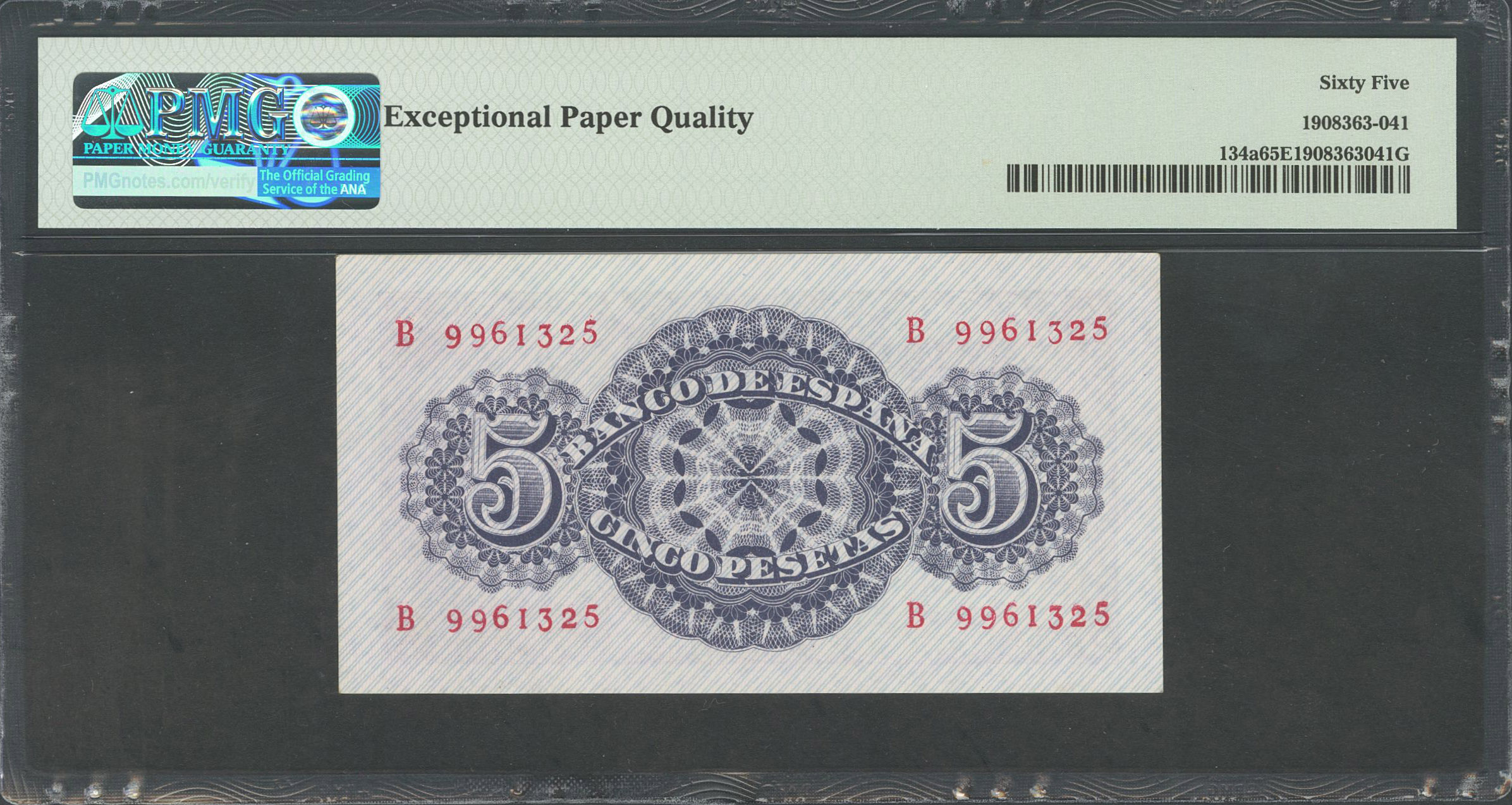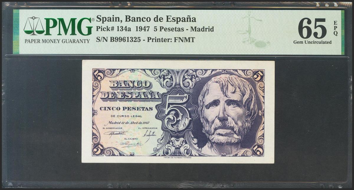 5 Pesetas. 12 de Abril de 1947. Serie B. (Edifil 2017: 454a). Apresto original. SC. Encapsulado PMG65EPQ.