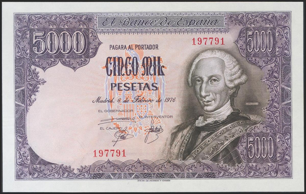 5000 Pesetas. 6 de Febrero de 1976. Sin serie y numeración capicúa. (Edifil 2017: 475). Apresto original. SC.