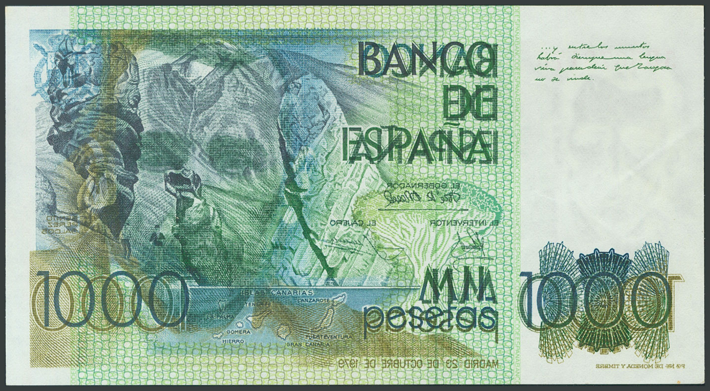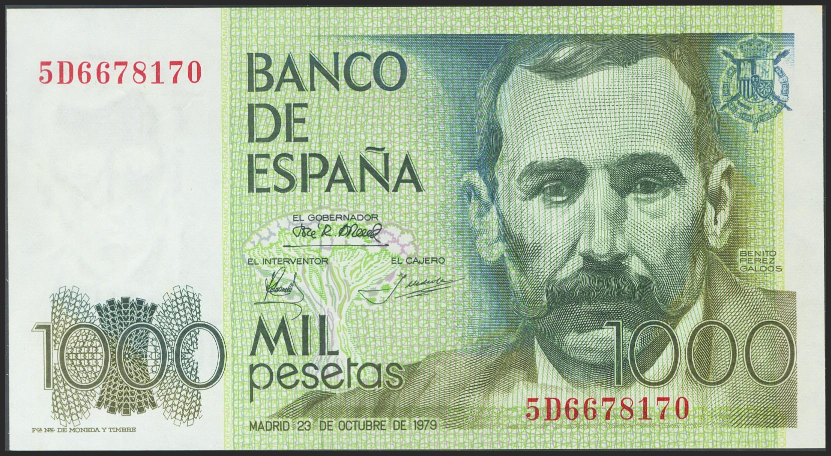 1000 Pesetas. 23 de Octubre de 1979. Serie 5D. Fallo de impresión en el reverso. (Edifil 2017: 477a). Raro. EBC+.