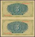 5 Pesetas. 4 de Septiembre de 1940. Pareja correlativa. Serie H. (Edifil 2017: 443a). Apresto original. SC-.