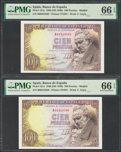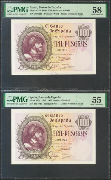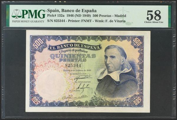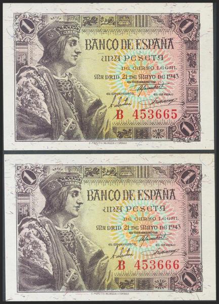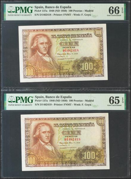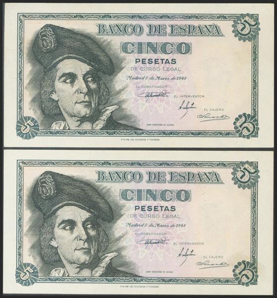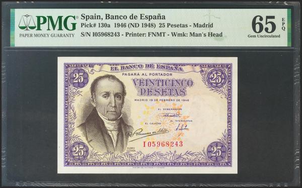 Proyecto de billete no adoptado de 25 pesetas representado por anverso y reverso sobre cartulina, fechado el 23 de Abril de 1956. El anverso representa a Concepción Arenal y el reverso muestra la Torre de Hércules, dos elementos gallegos en el diseño (recordemos que Galicia aparece por primera y única vez en las 500 pesetas de 1979, con Rosalía de Castro). Se trata de un conjunto único de excepcional belleza digno de un museo.