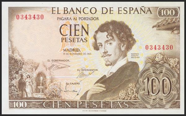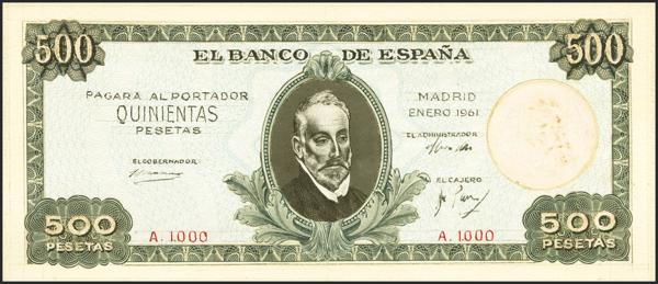 El billete está construido a partir de la técnica de aguada, matizando los colores diluyéndolos con agua, y supone un ejemplar magnífico de un diseño completo de posible billete producido por artistas de la F.M.N.T. El anverso está terminado puesto que se contempla hasta la posible impresión del offset de los fondos. El reverso muestra mucho espacio vacío, pero proporciona una poética sugestión de la marca de agua como el sol sobre el mar. El diseño global cuenta con una temática que quizá hubiera encajado mejor en la emisión de 1946, con humanistas como el Padre Vitoria y Luis Vives, pero sin duda encajaba con la propuesta de personajes culturales relevantes de España que se venía desarrollando.
