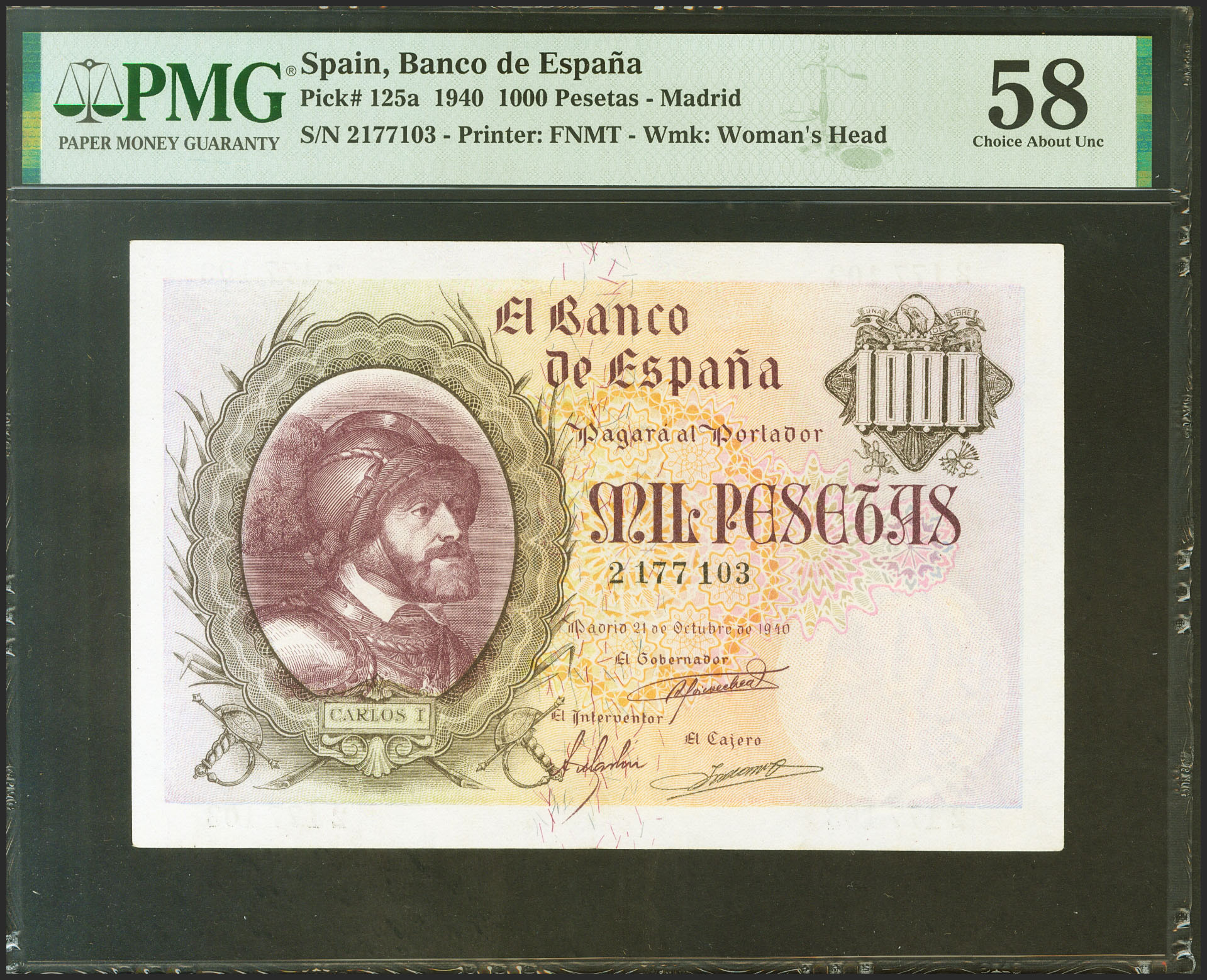 1000 Pesetas. 21 de Octubre de 1940. Sin serie. (Edifil 2021: 445, Pick: 125a). Inusual en esta calidad. EBC++. Encapsulado PMG58.