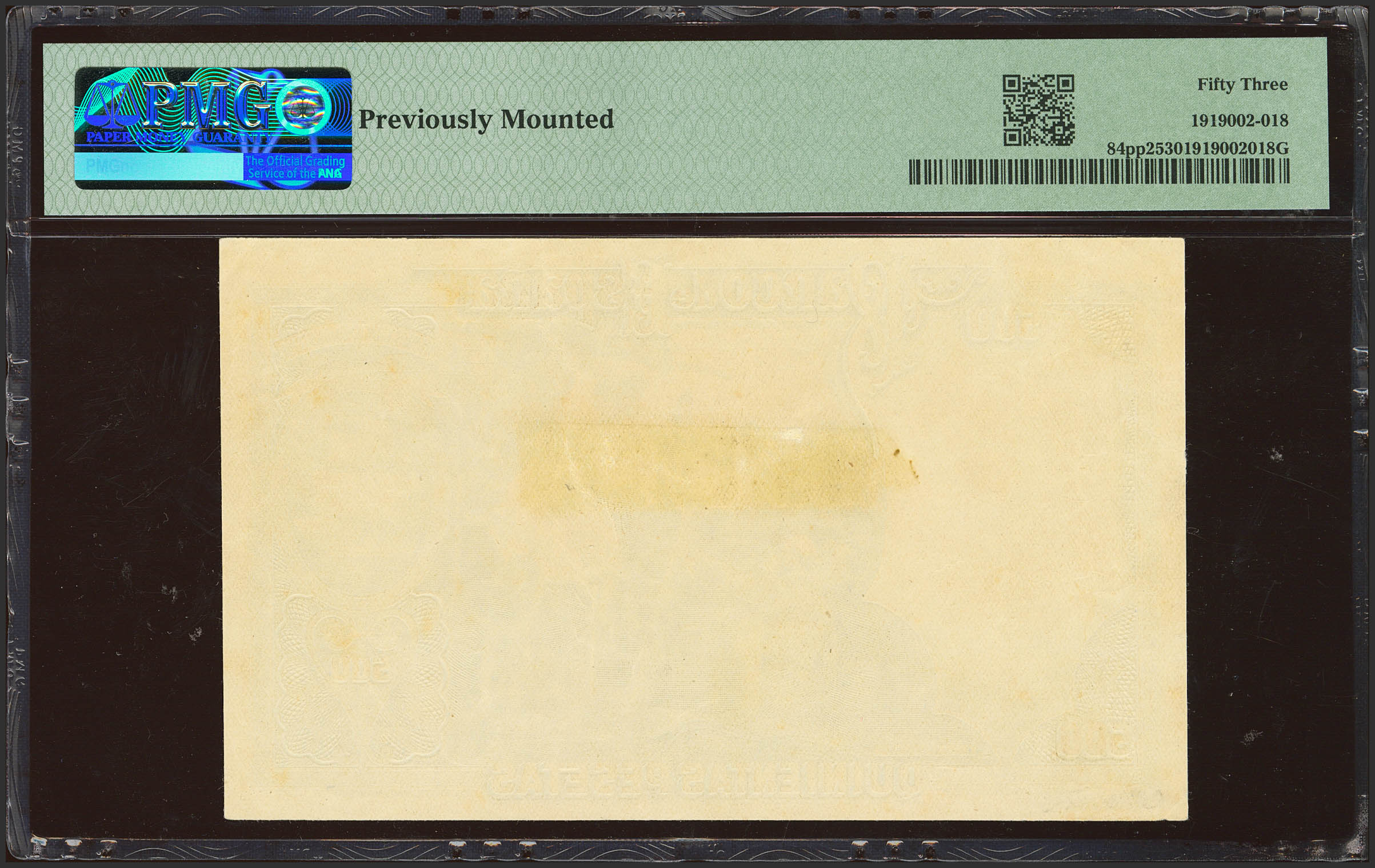 500 pesetas. Prueba de color del reverso del billete de Juan Sebastián Elcano. (Edifil 2023: 361Pb). RarÃsima. EBC. Encapsulado PMG53 (previously mounted).