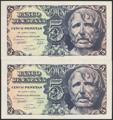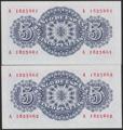 5 Pesetas. 12 de Abril de 1947. Pareja correlativa. Serie A. (Edifil 2023: 454a). Conserva todo su apresto original. SC-.